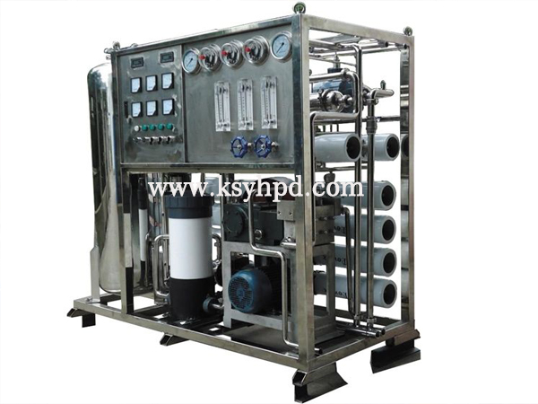 预处理系统包括供水泵、多介质过滤器、精密过滤器、保安过滤器,主要处理原水中所含的大颗粒杂质、余氯及细小微粒,保证反渗透系统的进水水质。