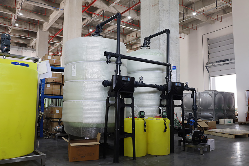 成套加药装置将粉状药剂或液体药剂定量输送至溶液箱,同时启动搅拌装置对溶液箱内的溶液进行搅拌,然后开启溶液箱下部的阀门,使溶液自流至计量泵的入口处,再由计量泵根据设定需求将溶液输送到投加点,其投加量由全自动控制系统通过变频控制系统或电动冲程控制系统对计量泵的流量进行控制。在计量泵的出口管路口处设有逆止阀、压力表、流量补偿器以及安 全溢流阀等零部件,使计量泵的药剂投加可靠。加药装置通过高精度在线水质检测设备,跟 踪水质变化,并控制加药泵自动实时定量添加药剂,使出水达到工艺需要的水质标准。
